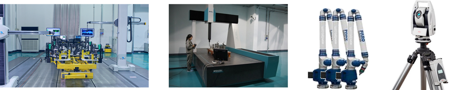 公司測量部配有Faro移動測量臂8臺,Leica激光跟蹤儀1臺,海克斯康雙臂水平測量機1臺,溫澤橋式測量機1臺,常用測量軟件有Metrolog XG,PC-Dmis,PC-Camio